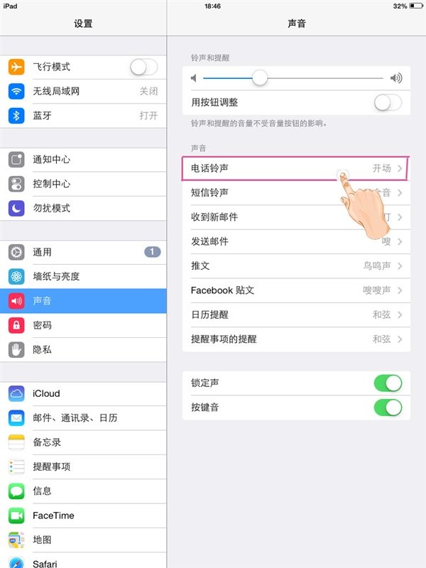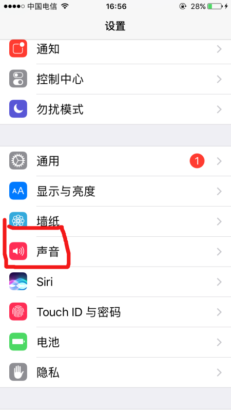 第一步、在“设置”应用界面,点选“声音”,进入“声音”设置页面。