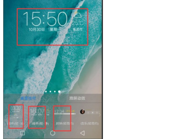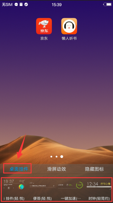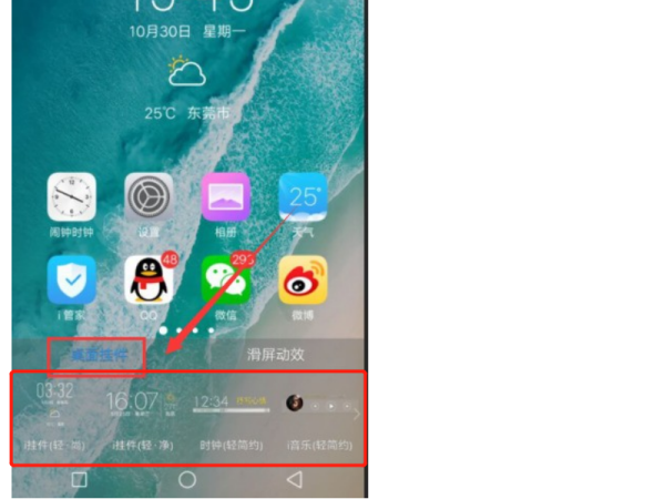2、长按桌面后,底部会多出来一栏,这里面会有许许多多的小挂件;