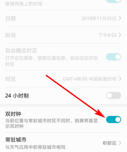 5、进入到日期和时间界面,可以看到双时钟显示已开启。