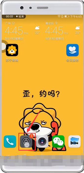 1、打开华为P10手机界面,在华为P10手机桌面上找到设置图标,点击进入。