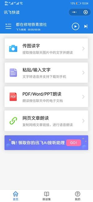 讯飞快读是科大讯飞旗下的文字转语音工具。可用于广告视频配音、自媒体文章配音、txt小说朗读、教学课件朗读、办公文档取字朗读。