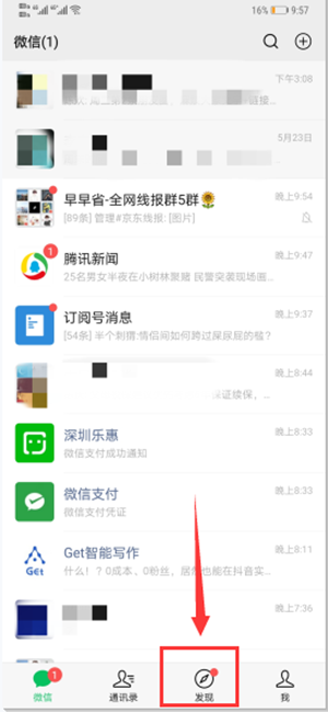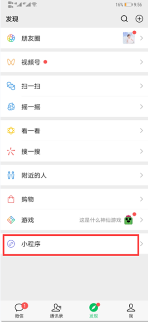 1、打开手机上的微信,选择下方栏目里的【发现】选项。