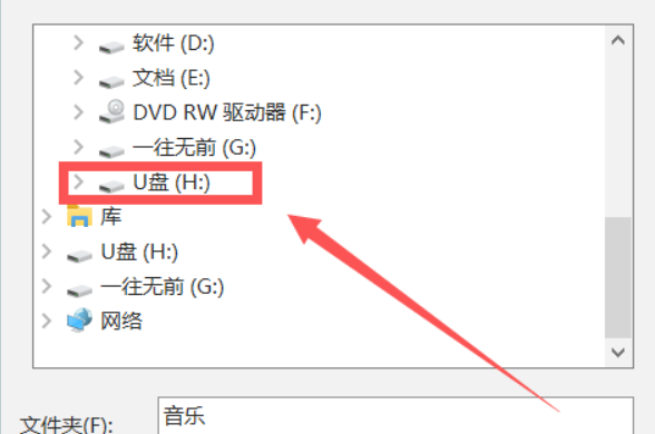 4、在浏览里可以选择自己的U盘作为歌曲储存磁盘。
