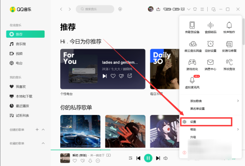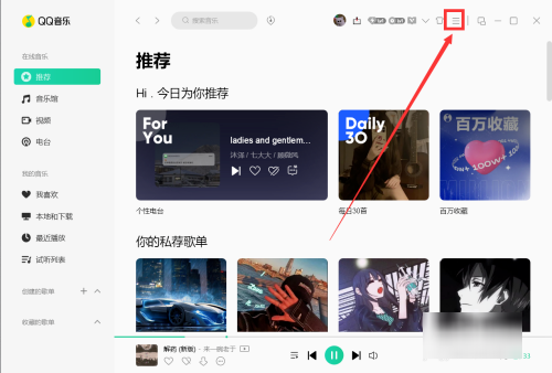 1、打开QQ音乐右上角点击"菜单"。
