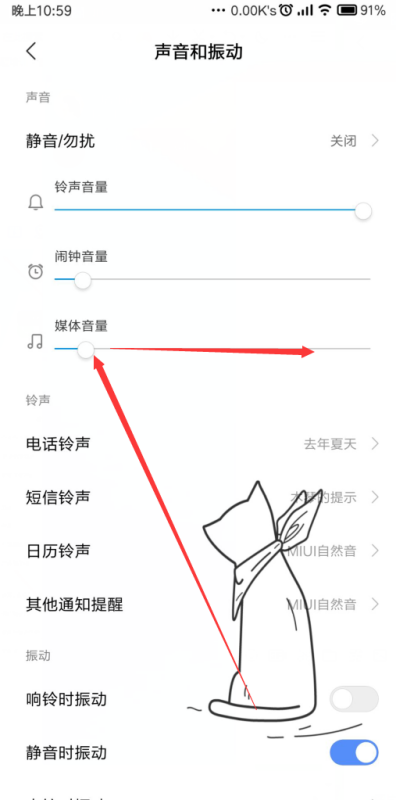 3、找到媒体音量,将按钮调大即可完成红米note手机增加音量,如下图所示: