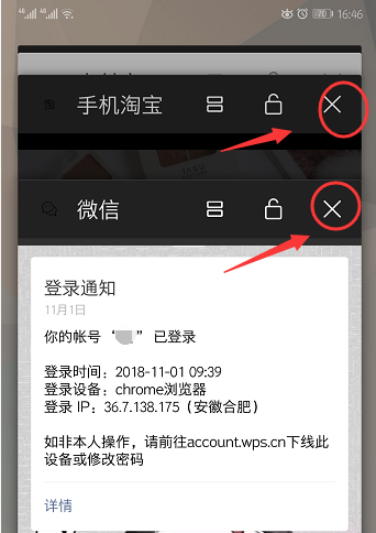 2、关闭单个应用可以向上滑动应用页签或点击应用页签右上角的“×”关闭对应的应用。