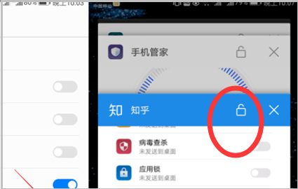 4、当不想在清理后台时关闭其中一些应用程序,可以点击应用卡片右上方的锁状图标,让锁头闭合锁定该应用 ,之后再点击清理后台就不会把这个应用清理掉了。