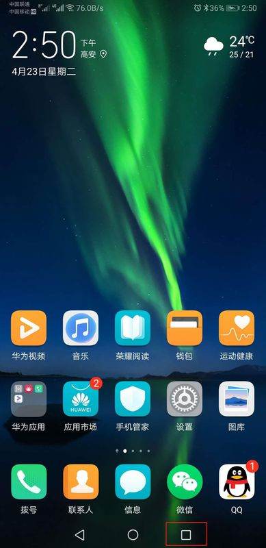 1、华为P20手机在打开屏幕的状态时,左右滑动home键即可查看到最近运行的后台应用。