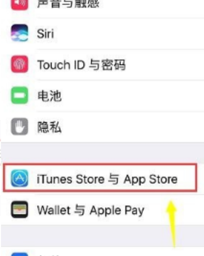 2、进入设置后,找到iTunesstore和applestore选项,打开,如下图。