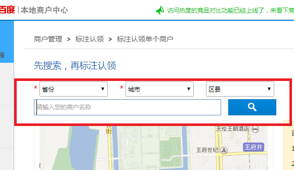 2、在商户免费标注后台,点击【标注认领单个商户】进入到新页面,如下图: