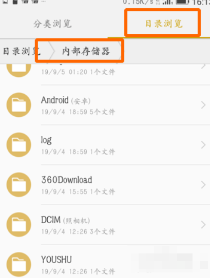 2、点击并进入【文件管理】后,找到目录浏览下的内部存储器,如下图所示。