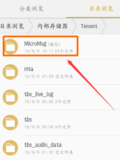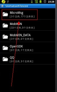 3、然后在页面中找到MicroMsg文件夹。