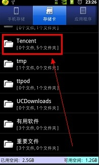 3、然后,在“内部存储器”菜单里往下拉找到“Tencent”,如下图所示。