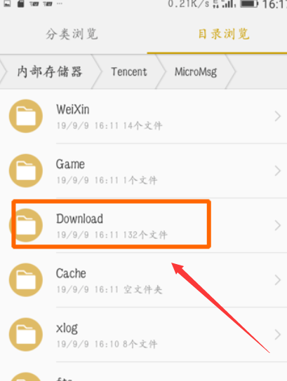 6、最后,点击打开Download文件夹,就会看到手机微信接收的文件了,如下图所示。