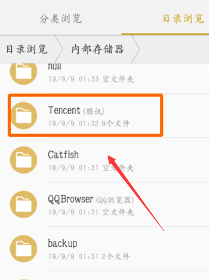 2、点击文件管理器,在里面找到Tencent文件夹。
