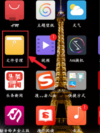 1、首先,在手机桌面找到【文件管理】并将其打开,如下图所示。