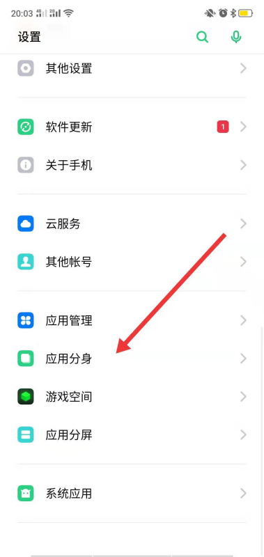 2、进入设置界面之后,选择点击”应用分身“选项,如下图所示。