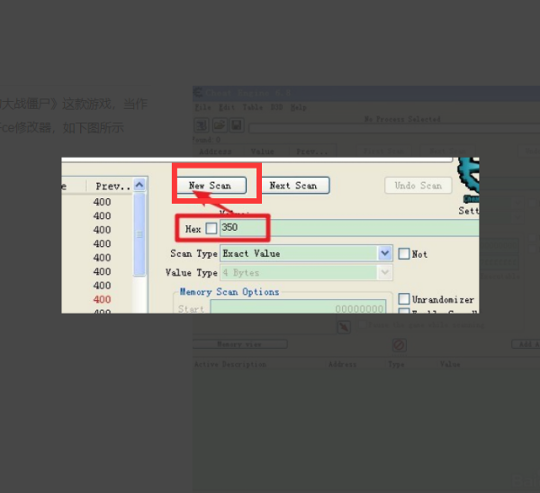 5、在Hex那框中输入游戏中那太阳的数量400,然后点击first scan;