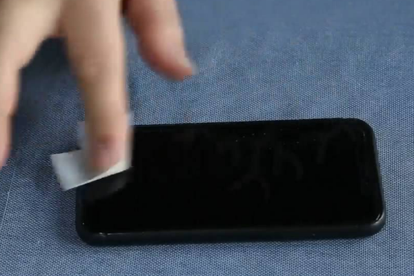 待钢化玻璃膜自动吸附屏幕后,可能还会有些小气泡,这时可以使用无尘布轻轻来回擦拭几次,把这些小气泡压下,这样就大功告成了!