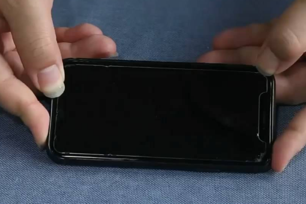 6、最后使用无尘布将钢化膜中的气泡推到屏幕外面去,这样钢化膜就贴好了。
