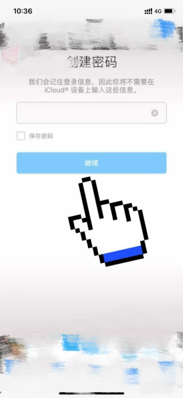 再在创建密码页面,输入要设置的密码,之后再点击下方蓝色字体【继续】选项。