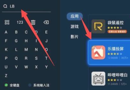 4、打开电视上的应用市场,下载安装好第三方投屏软件,手机上也下载安装好同款软件,如图所示。