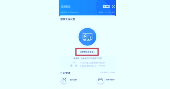 8、接下来,从打开的手机应用界面中,通过搜索将自动获取当前局域网中存在的大屏设备,当找到相应的海信电视型号后,点击即可完成投屏操作。