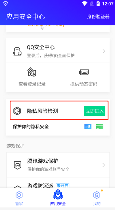 接着在手机管家界面的底栏可以看到「应用安全」的按钮,我们点击进去。
