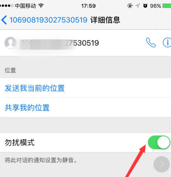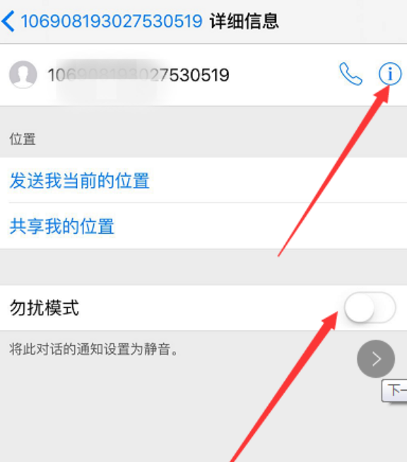3.在详细信息页面打开右面的感叹号,可以把该号码的勿扰模式按钮打开。