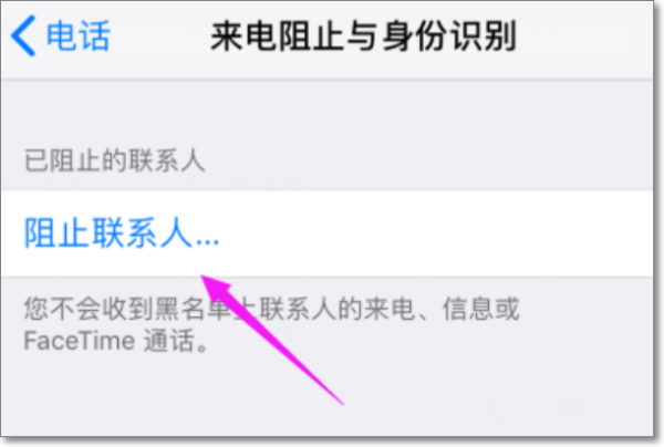 4、【来电阻止和身份识别】之中,点下【阻止联系人】,如图。