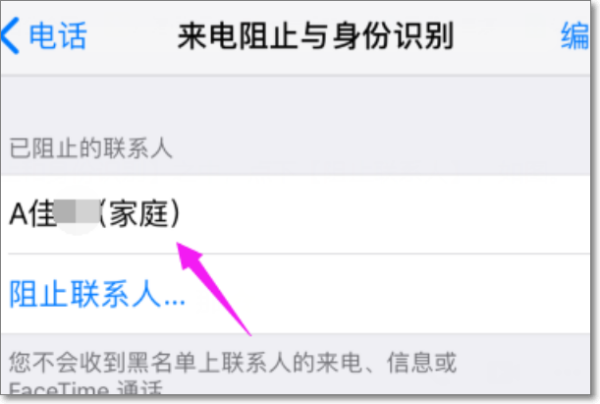 6、屏蔽之后就可以发现在【来电阻止和身份识别】中有了,之后就看不到对方的信息也收不到了。