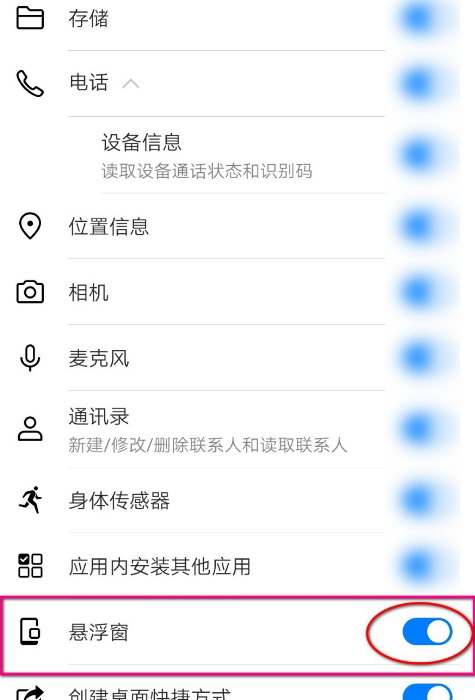 5、找到【悬浮窗】右侧的开关按钮,此时为白色关闭状态。