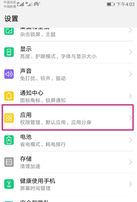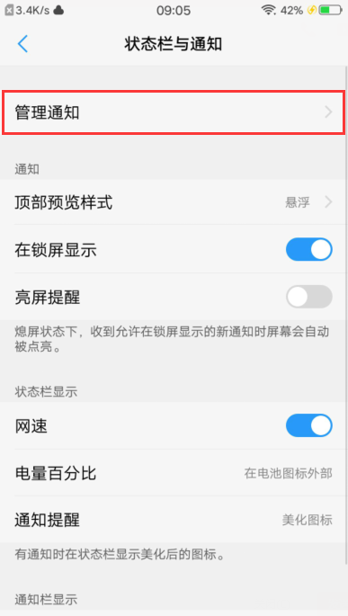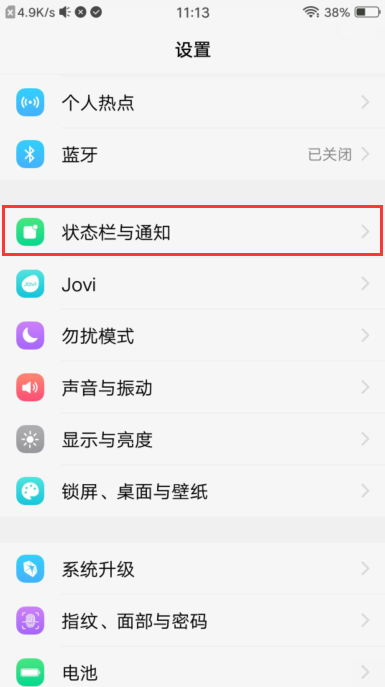 二、 进入设置以后,选择“状态栏与通知”选项,如下图所示。