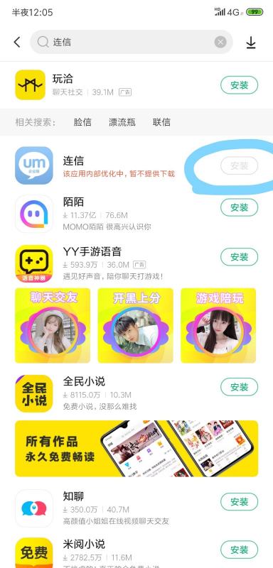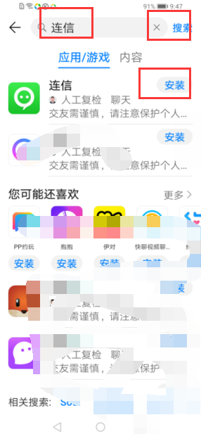 4、点击安装:在搜索栏中搜索连信APP跳转页面后。点击安装。这就是这个步骤了,所以的步骤已经完成了。