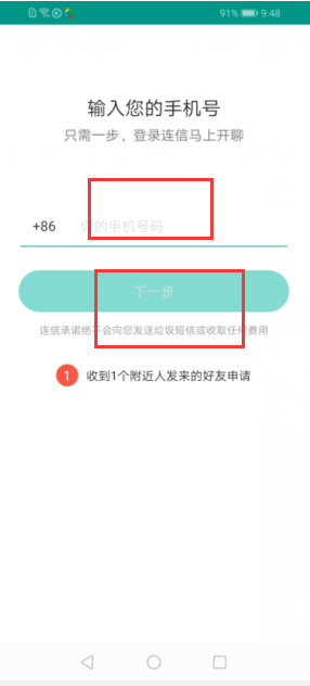 5、在打开的界面中,输入自己的手机号码,点击“下一步”按钮。