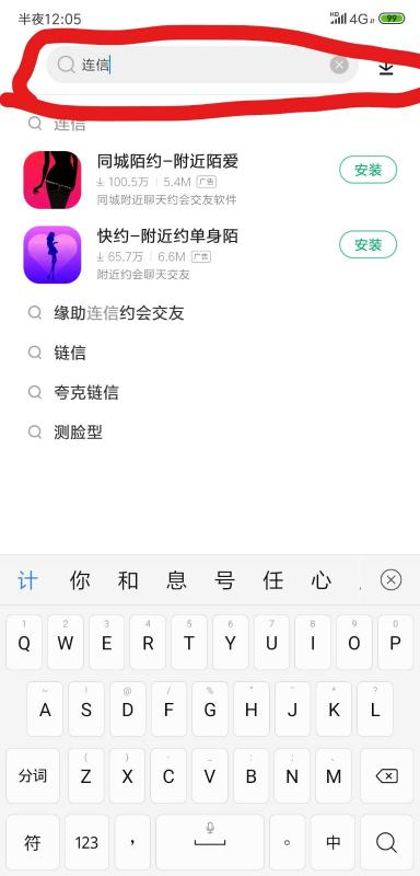 3、搜索连信APP:找到搜索栏点击搜索栏后。在搜索栏中搜索连信APP。这就是这个步骤了,下面进行下一个步骤。