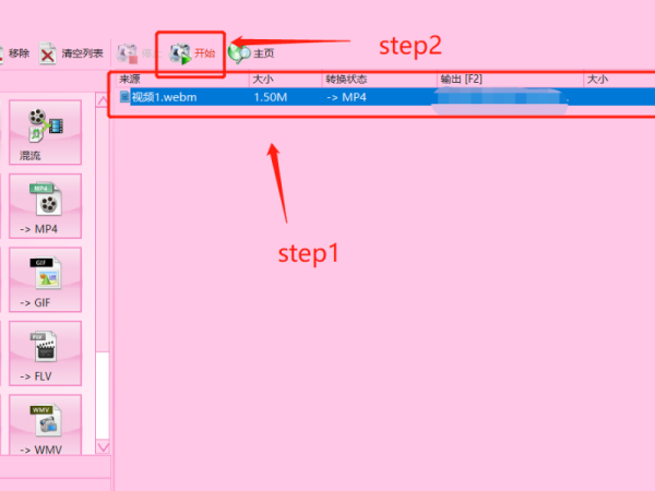 6、在软件主界面上,首先在预览信息中确认转换任务信息,确认后点击工具栏中的开始按钮进行视频的格式转换。