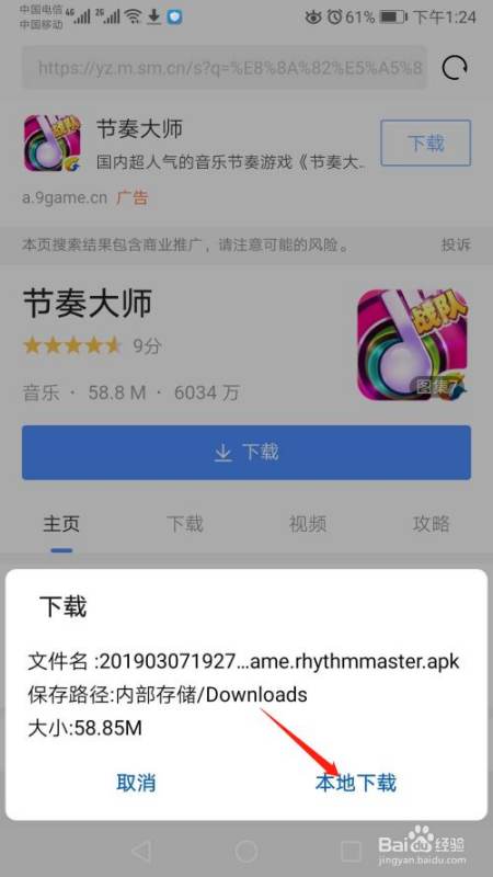 想下载的一款应用(或APP)----“节奏大师”为例,给大家操作一遍,其它应用同理可得