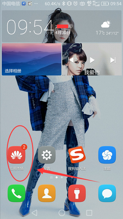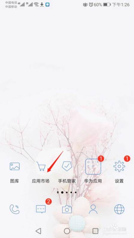 首先,点击华为手机桌面上的【应用市场】,如下图所示