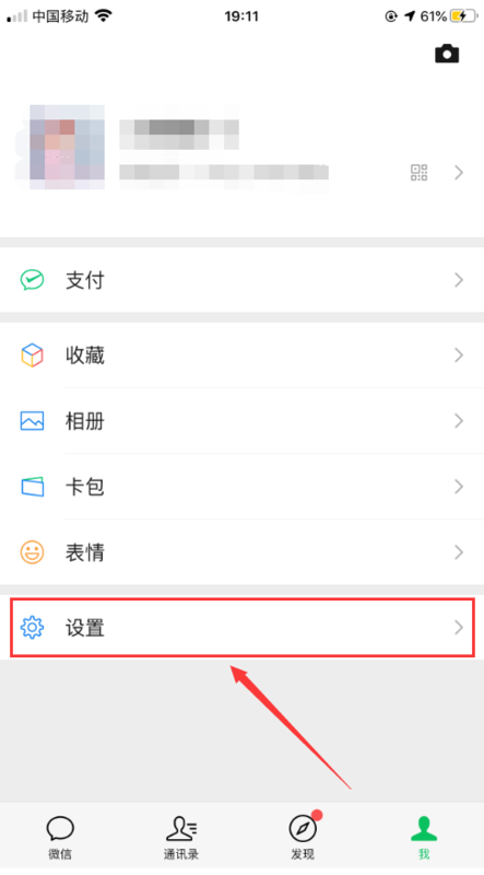 2、然后,在微信界面中点击右下角的【我】,然后在我的界面中点击【设置】选项,如下图所示。