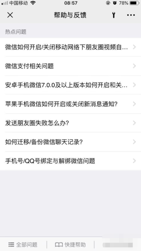 4、进入帮助与反馈界面中,点击底部栏中的【快捷帮助】选项,如下图所示。