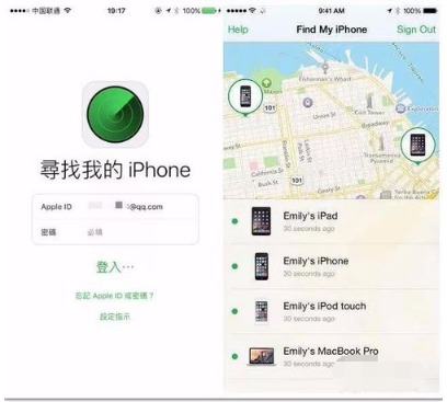 3、然后在其中一台设备上「打开查找我的iPhone」应用就能看到其他设备的实时位置了。