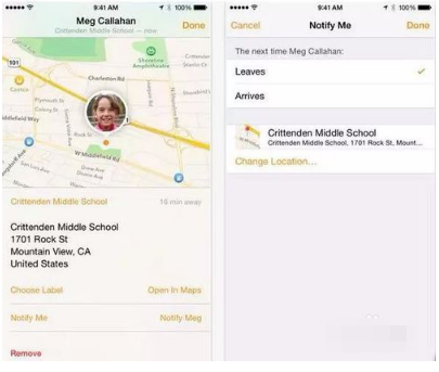 2、还可以设置当朋友离开或到达某个地点给自己提醒。