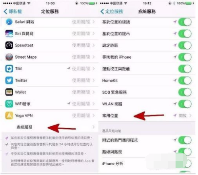 2、在「设置-隐私-定位服务-系统服务-常去地点」中查看该设备最近几个月的常去地点记录。