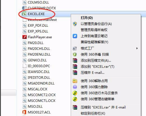 1、首先,找到软件(Excel2007)的安装文件夹,右键点击图标,选择属性。