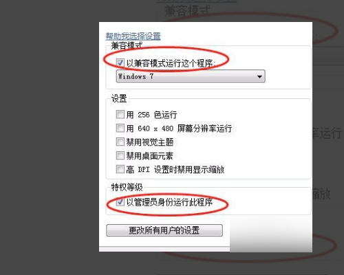 3、勾选上“以兼容性运行这文件”和“以管理员身份运行此程序”。