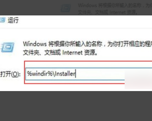 4、点击确定后,在弹出的页面中输入%windir%\Installer,按下回车键。