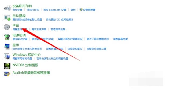 3、在硬件和声音界面,找到【声音】选项,点击进入。