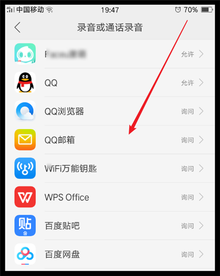 4、在应有权向管理页面点击打开“录音或通话录音”选项。如图可以看到设计到18个应用。