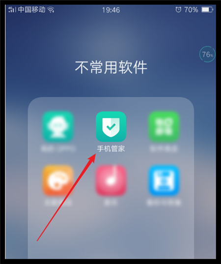 1、打开手机,找到手机内的手机管家软件。点击打开。